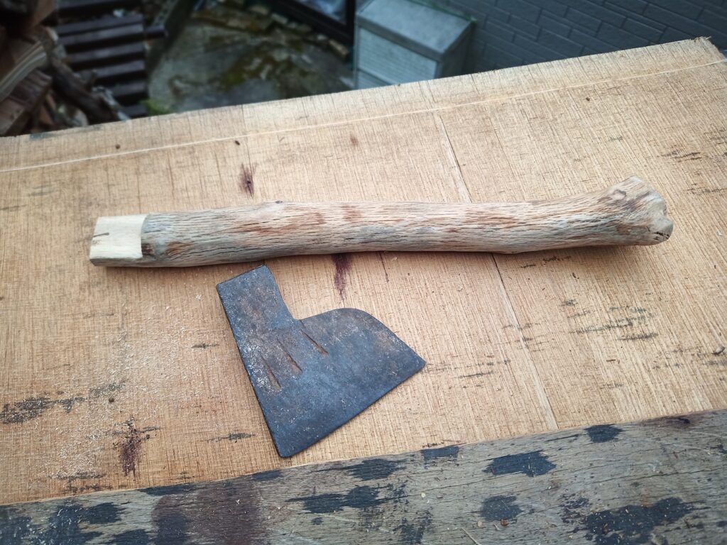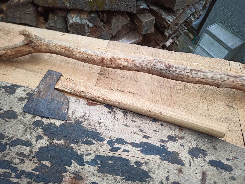 手頃なカシの木の枝が手に入ったので、こいつに入れ替えます。