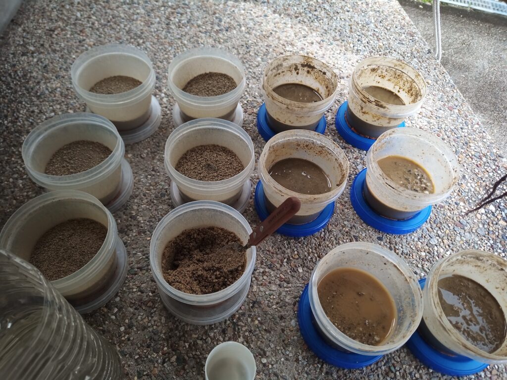 それに向けて、子供たちにやってもらう液状化の実験の準備です。