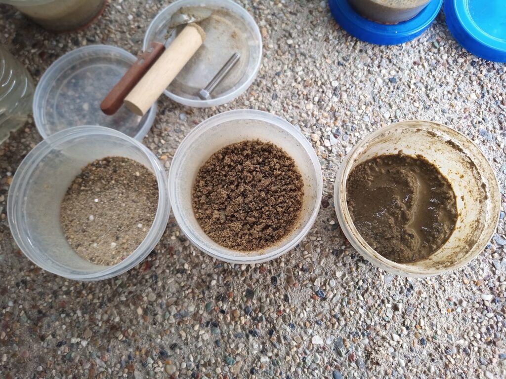 ちなみにおまけですが、左側の完全に乾燥した状態の容器を突き固めても、うまく固まりません。