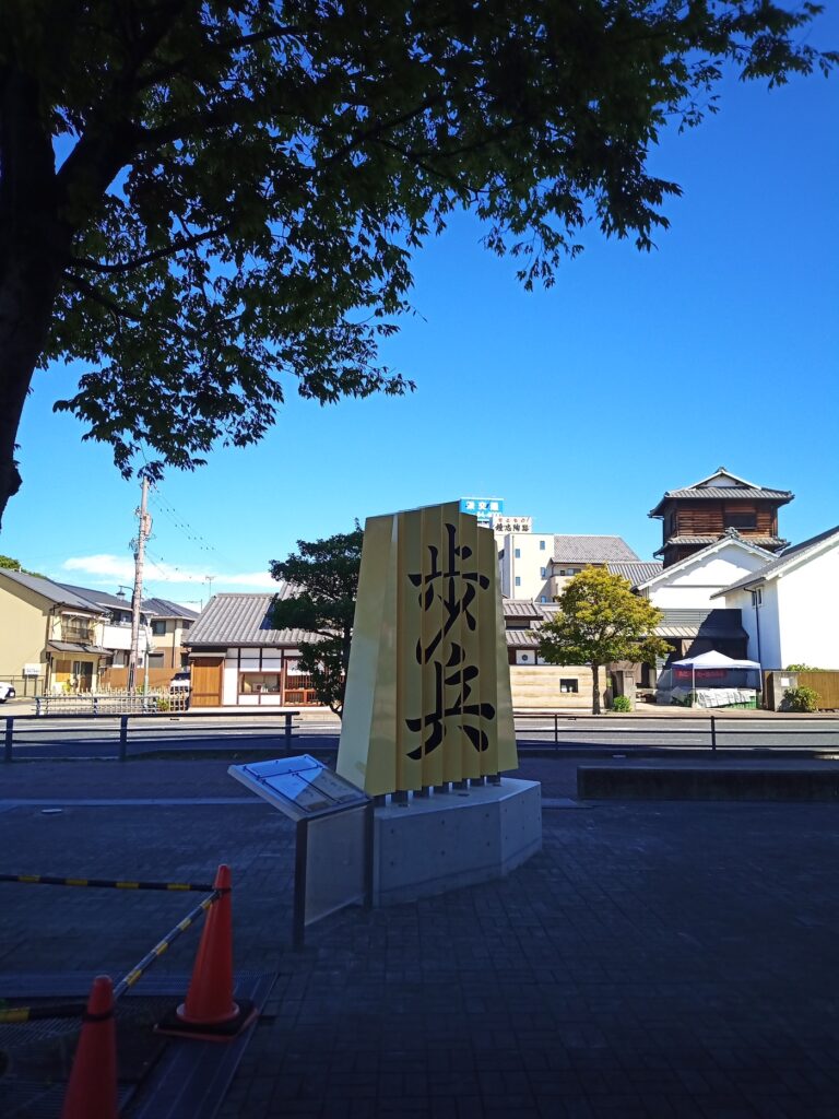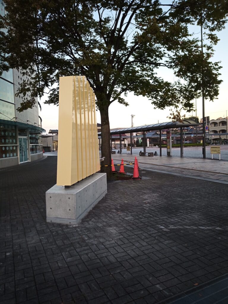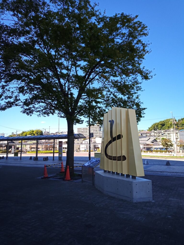 モニュメントの文字が道路側から見ると「と」、駅側から見ると「歩兵」と変化します。