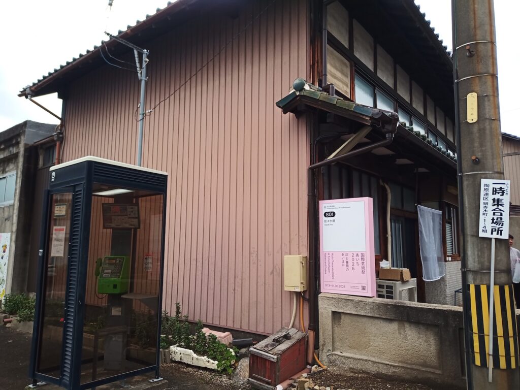 古ぼけた家屋の壁面に貼り付けた看板はこれだけでも立派な作品です。