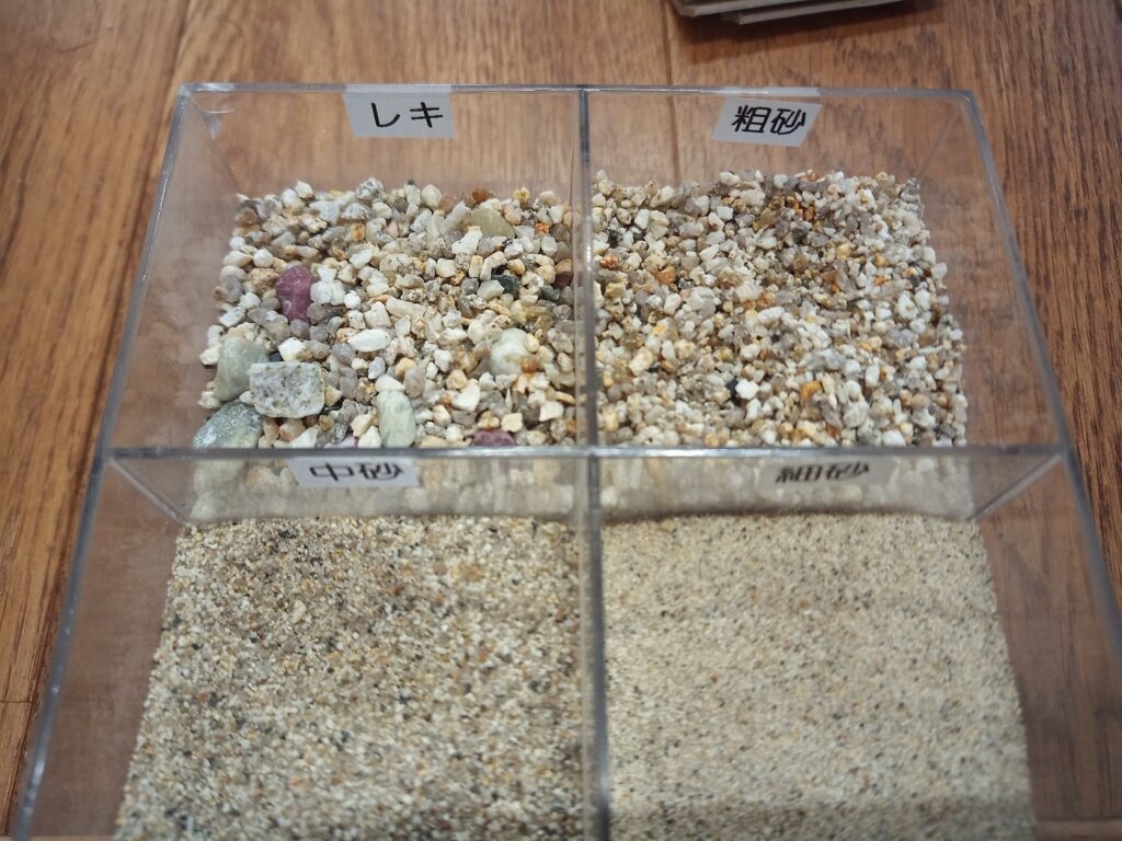 礫、粗砂、中砂、細砂と分けているのですが、礫の部分が以前に適当に作ったものなので、ちょっと修正します。