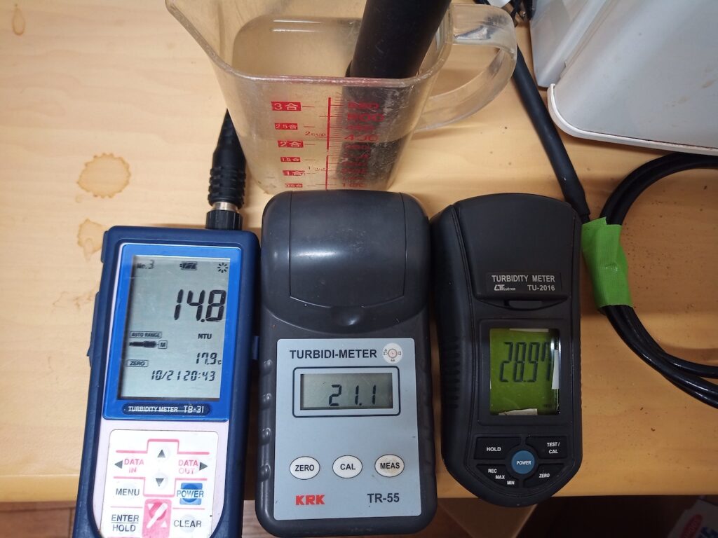 現地で測定する濁度は当てにならないことがよくわかりました。