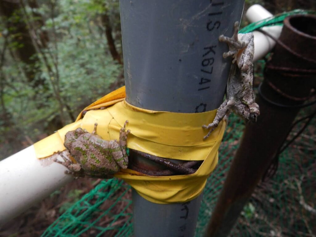 凍結防止のため袋をかぶせているのですが、開けてみると中からカエルが2匹。