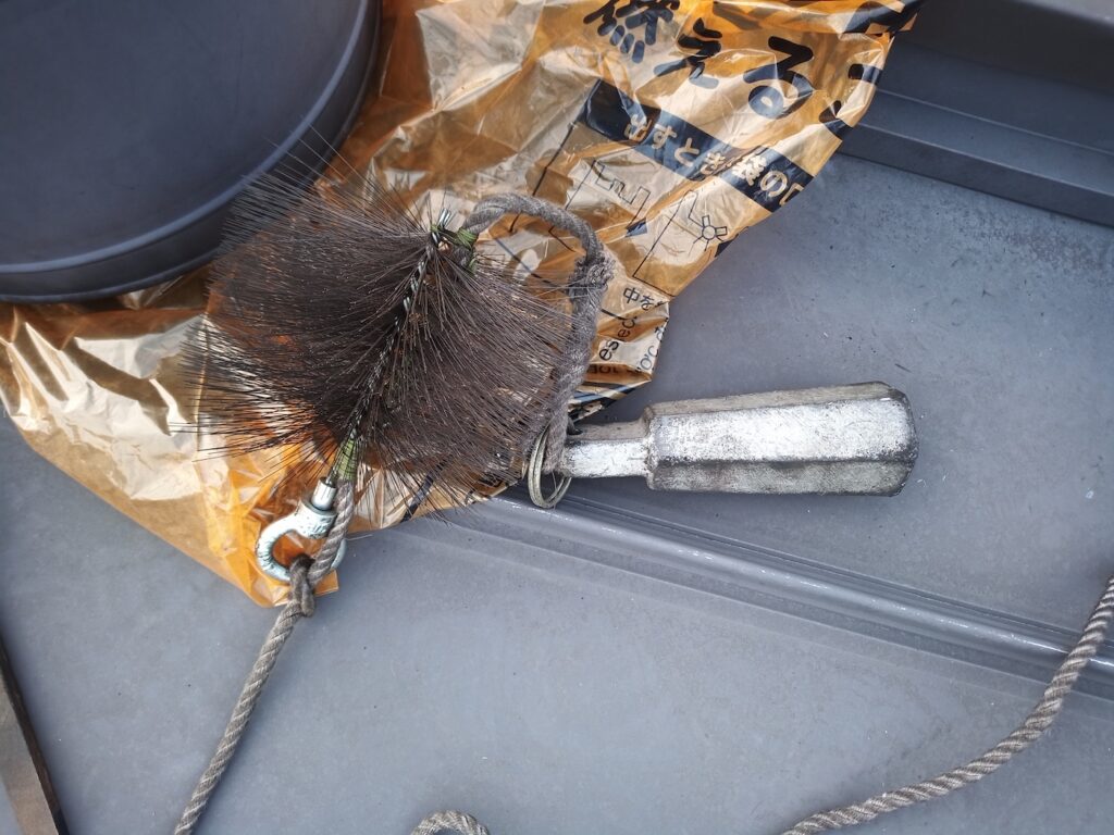 ロープにワイヤーブラシとオモリを繋いで、ひたすらゴシゴシとこすりおろしていきます。