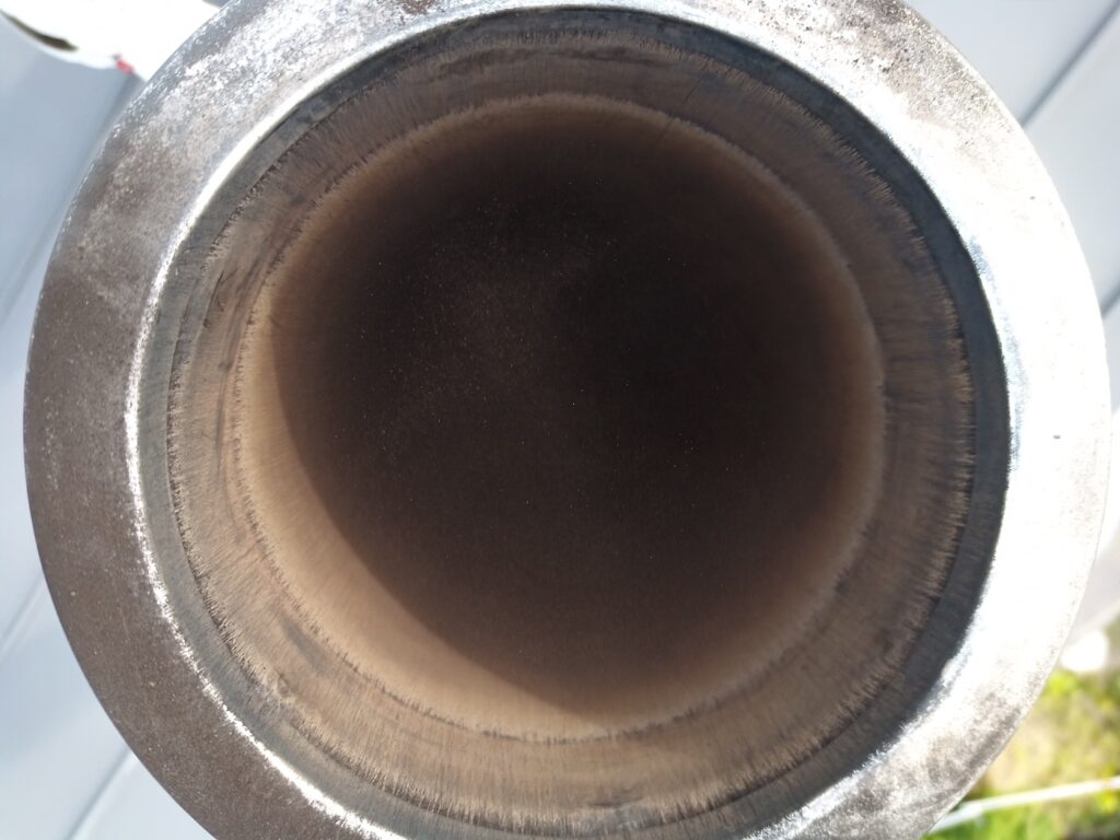 掃除前の煙突はこんな感じで、煤がこびりついています。