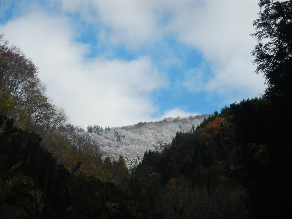 紅葉の季節のピークと思っていましたが、早くも山の上はうっすらと雪化粧でした。