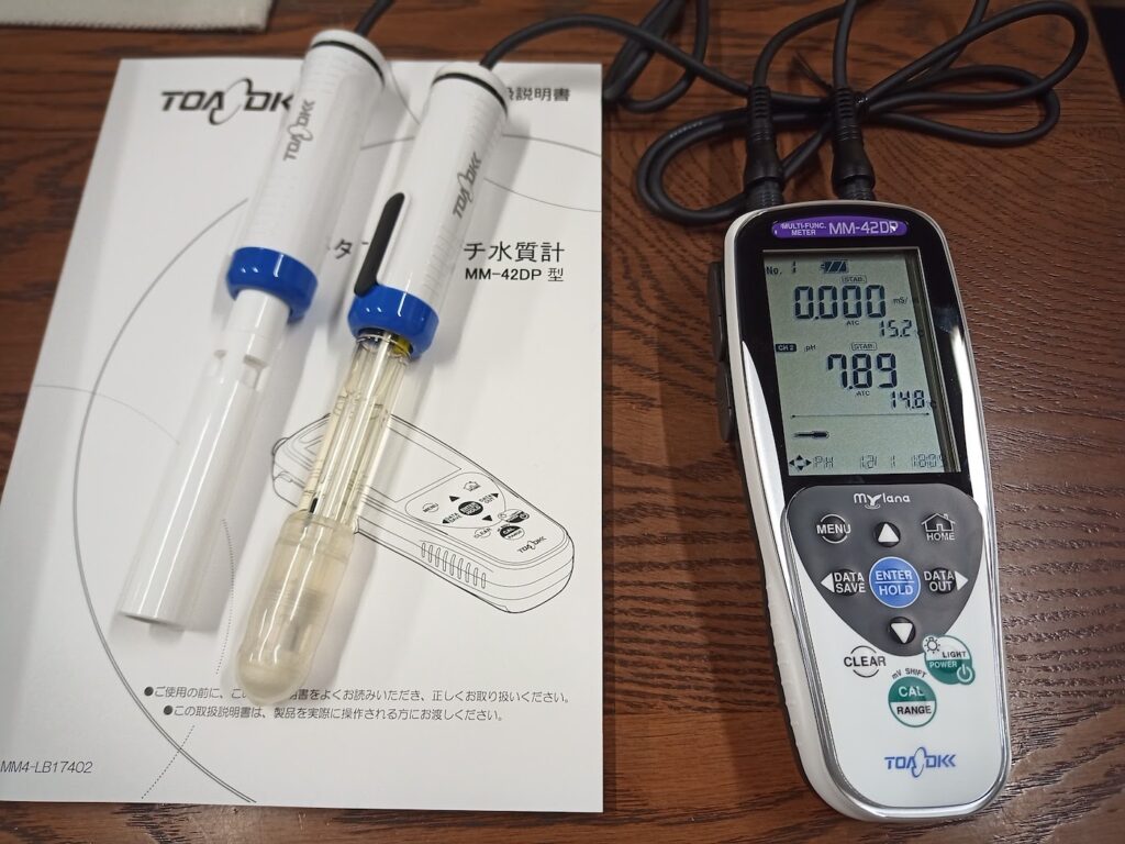 今まで使ってきたHORIBAのpHEC計が調子が悪くなり始めたので、心機一転して新型を導入しました。