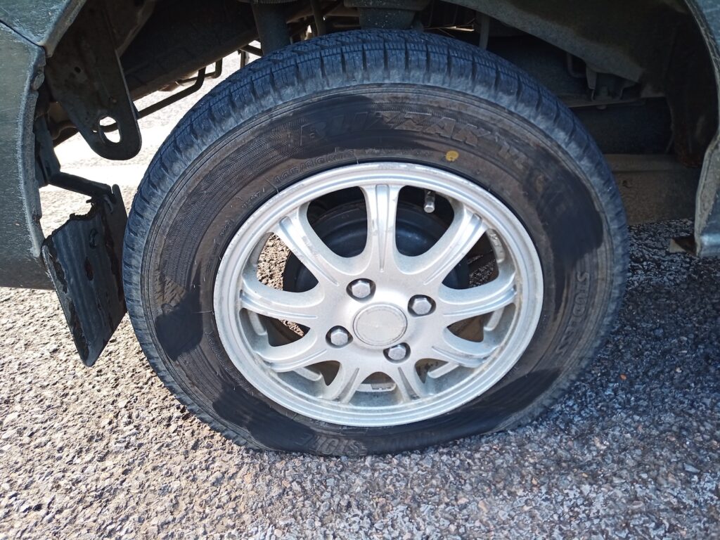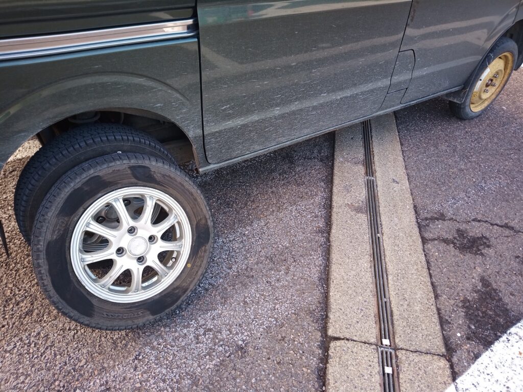 うちのエブリイはインチアップしているので、そのままスペアタイヤを駆動輪に装着するのはよろしくありません。