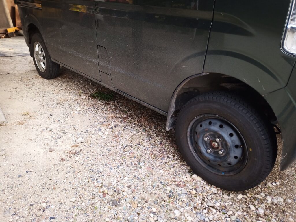 この予備のタイヤを純正のスペアタイヤと同じように収納して常備できると良いのですが、サイズが合わないので、載せることができません。