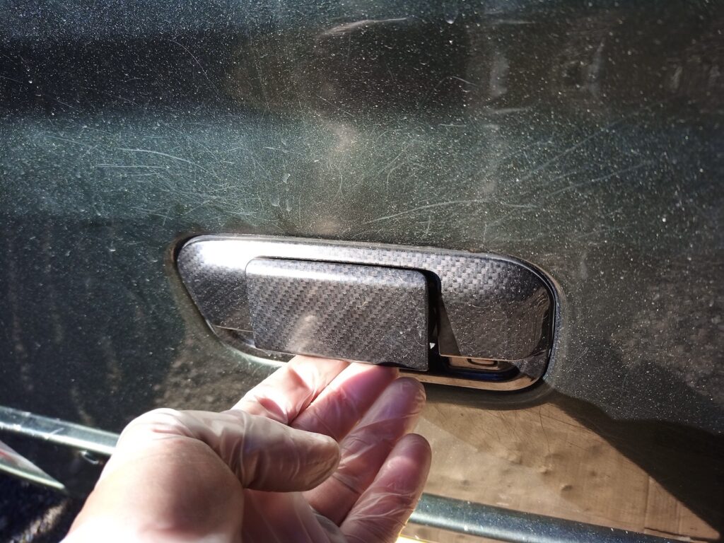 このバックドアハンドルは、バックカメラを装着する際にAmazonで購入したものに交換したものです。