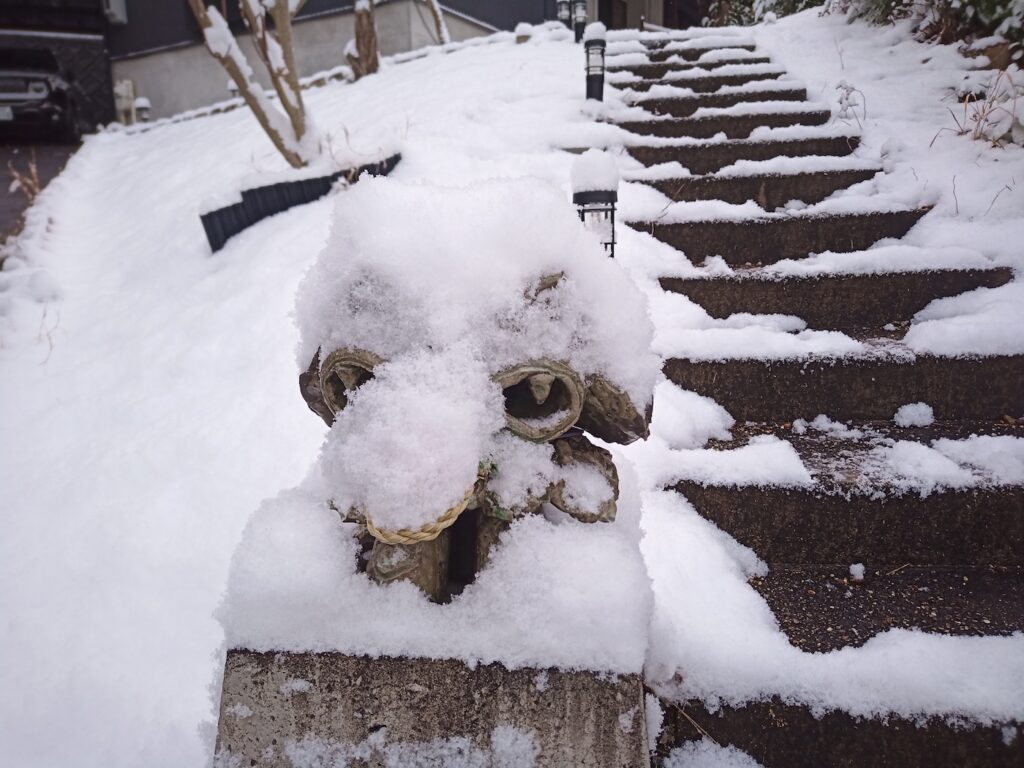 毎朝行く神社にも雪がびっしりと積もっていました。