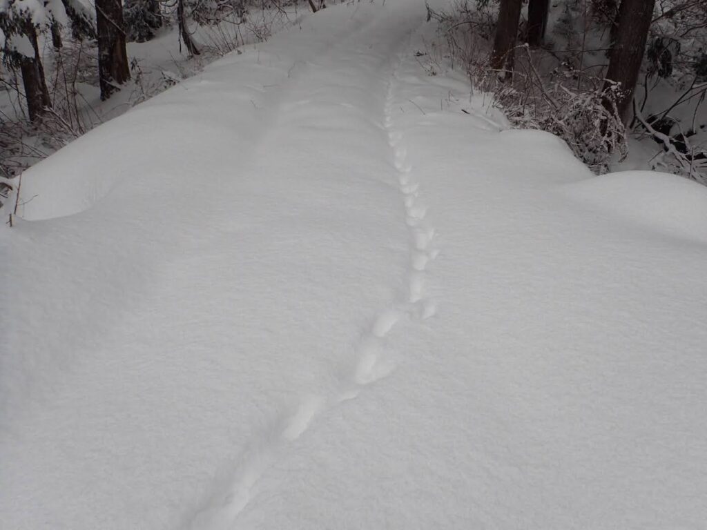 いつものようにスノーシューを装着して、一歩一歩ひたすら登ります。