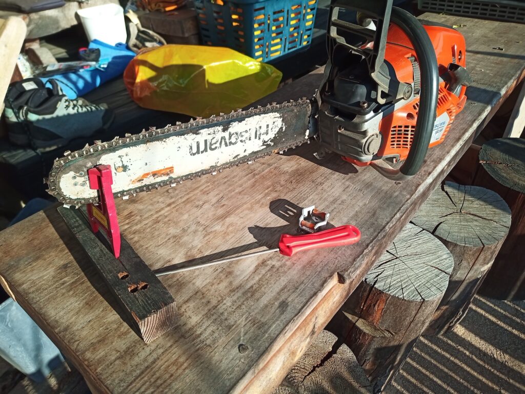 先日の薪集めで使ったチェーンソーのメンテナンスをしておきます。