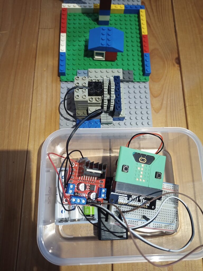 振動装置はLEGO、モーターの制御をmicro:bitにより行なっています。