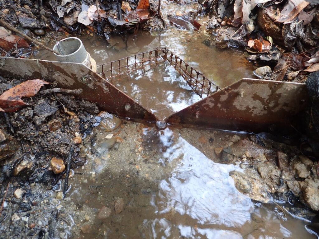 こうなると設置している三角堰の切り欠き部分よりも水位が上がってしまい、正確な水位変化を測定することができません。