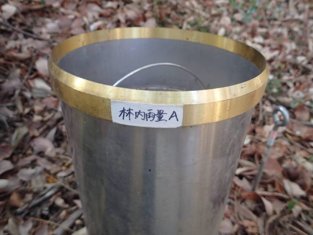 ここでは樹冠通過雨量を観測しています。