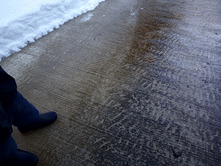 路面の状態をよく見極めて歩かないと転倒します。