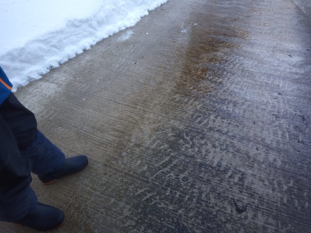 ただ、いつもと違ったのは路面が凍りついていたことです。