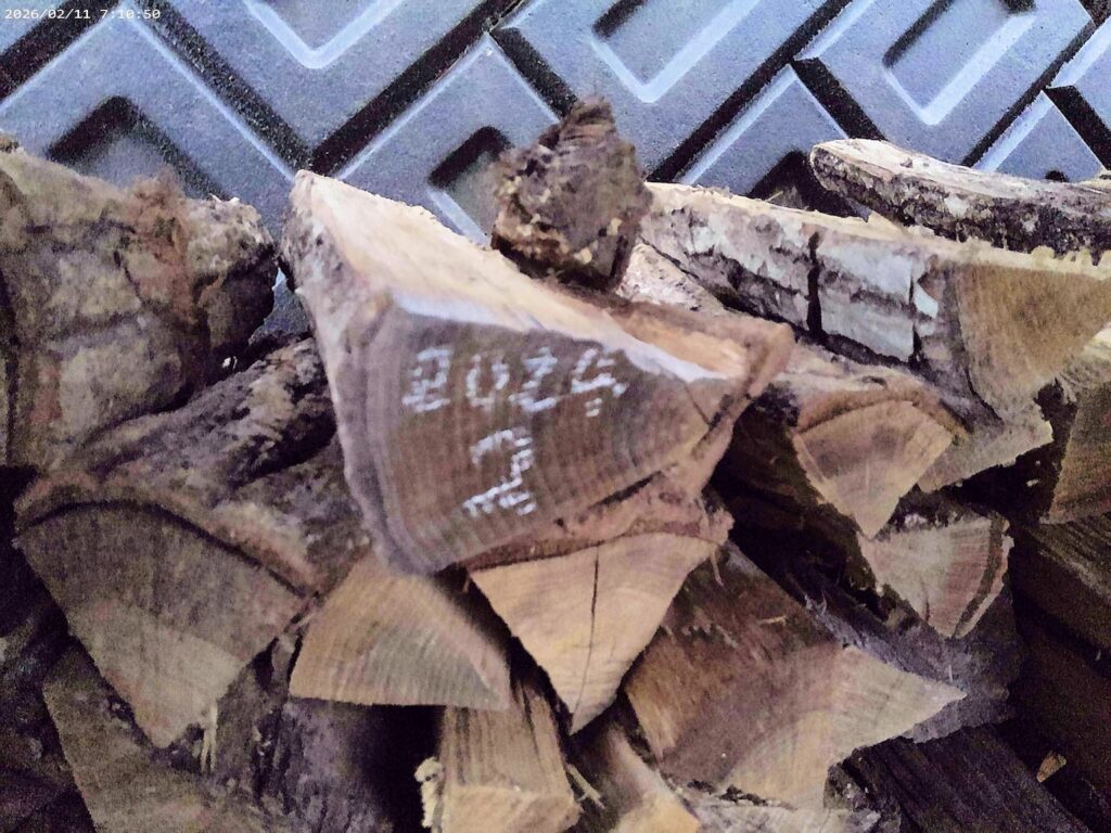 今は、2024年2月に薪割りした分を使っています。