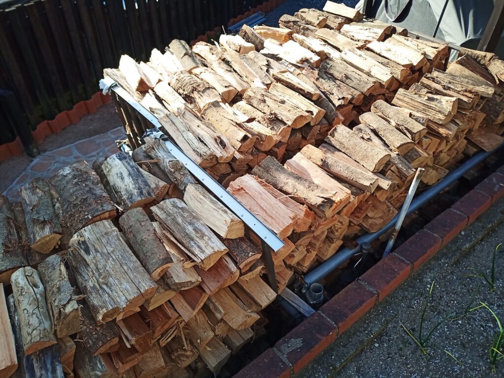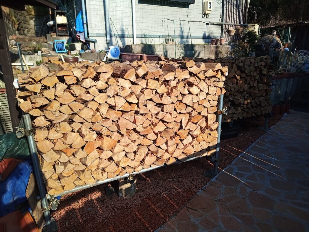 この状態で、1年間野晒しにして、さらに薪棚に移動して1年間乾燥させます。