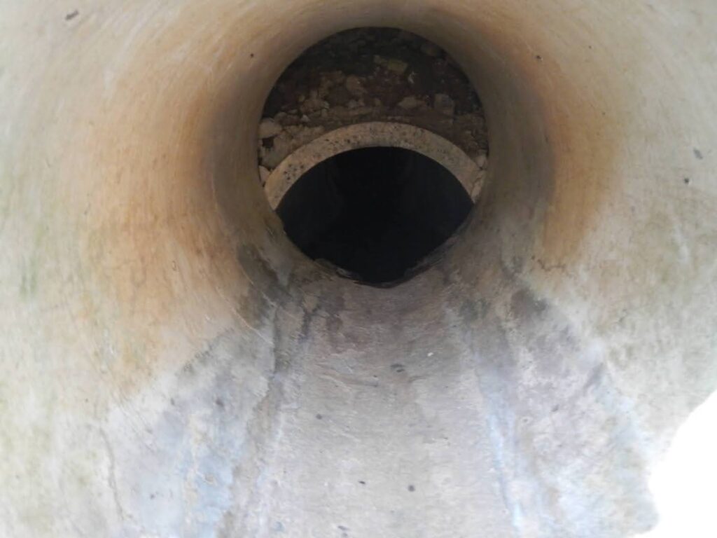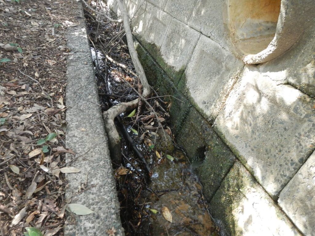 ただ、擁壁から出ている水抜きの土管を覗くと、大きくズレていました。