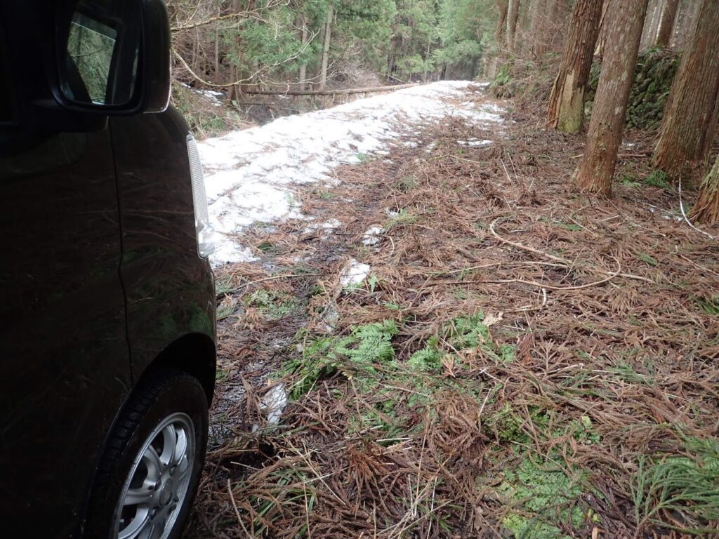 スノーシューを装備するほどではありませんが、車で行けるかもという淡い期待を裏切られるので、ちょっと辛いです。